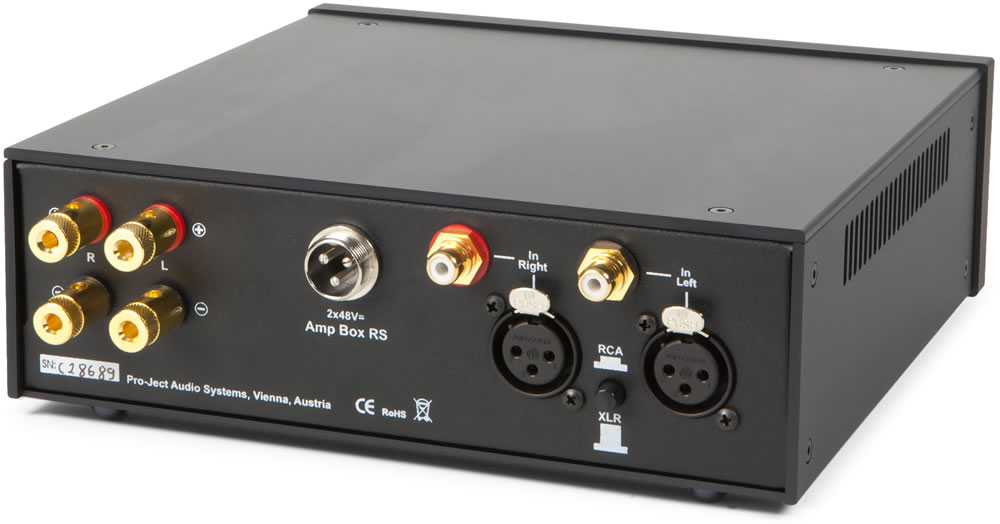 Pro-Ject Amp Box RSHighend Stereo Endverstärker• Echtes Doppelmono-PWM-Design (Pulse Wave Modulation) • Effiziente Umsetzung von Netzstrom in Leistung (92%) • DC Netzteil (<1 Watt Standbyverbrauch) • 2-Ohm stabil • Röhren-Puffervorstufe in Referenzqualität • SMD-Bauweise für kürzeste Signalwege • Stereo Hochpegel-Eingang (RCA & XLR) • Top-Lautsprecher-Anschlussterminals • Edles Metallgehäuse schützt vor Einstreuung • Frontblenden silbern oder schwarz • Optionales Upgrade: Linear Netzteil PS Box RS für mehr Leistung und noch besseren Klang Ultimative Highend Klangqualität gepaart mit kompakten Abmessungen und hoher Energieeffizienz Vier Besonderheiten zeichnen diese Highend-Endstufe aus: 1. Aufwändiger Doppelmonoaufbau 2.Hocheffiziente und energiesparende PWM-Verstärkermodule 3. Röhrenpuffer-Vorstufe 4. Aufrüstmöglichkeit mit Linear-Netzteil für mehr Leistung und noch besserer Klangqualität. Das optional erhältliche Linear-Netzteil PS Box RS macht diese Referenz-Enstufe zum Highend-Traum. Zusammen mit Pro-Ject Pre Box RS ergibt sich eine ultimative Traumkombination, die jeden audiophilen Zuhörer begeistern wird! Räumlichkeit, Feindynamik und Auflösung sind gepaart mit großen Kraftreserven und 2-Ohm-Stabilität und machen die Amp Box RS zur kostengünstigen Referenz, die auch perfekt für Bi oder Tri-Amping-Anwendungen geeignet ist. Aufgrund der Wärmeentwicklung nicht für die Verwendung mit Design Box Acryl geeignet. Die gebürstete Aluminiumfront ist in silbern oder schwarz erhältlich.