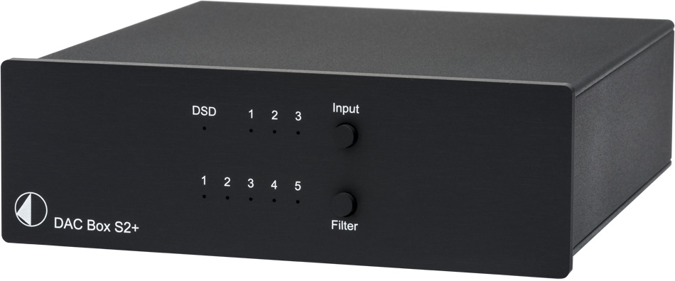 Pro-Ject DAC Box S2+High End DAC mit 32bit und DSD256 Support• High End ESS Sabre ESS9038 DAC • Proprietäres Clock Schaltungs-Design • Organische Polymer Kondensatoren und Thin Film miniMELF Widerstände • 32bit / 768kHz Dekodierung! • DSD64, DSD128 & DSD256 (DSD über PCM) • Bis zu 24bit/192kHz über den optischen und koaxialen Eingang • 5 wählbare digitale Filter Charakteristika • 1 proprietärer “Optimum Transient” Digital-Filter • Synchronisierung aller Oszillatoren • Jitterwerte von 100 Femtosekunden! • Vergoldetes 4-Schichten PCB • Aluminium/Metall Sandwich Gehäuse in silber oder schwarz DAC Box S2 + - Miniatur hochleistungs D/A Wandler! DAC Box S2 + ist voll ausgestattet für die höchsten Ansprüche des modernen Audiophilen. Sie liefert Unterstützung für PCM Dateien bis 32bit / 786kHz und DSD Dekodierung bis hin zu Quad-DSD (DSD256). Fünf digitale Filter stehen zur Auswahl um den Klang nach den eigenen Wünschen zu formen. Drei digitale Eingänge gewährleisten Anschluss für alle möglichen Signalquellen, sei es ein PC über den USB B Eingang oder ein Fernsehgerät über den optischen S/PDIF Eingang. Der koaxiale Eingang nimmt alle Daten eines digitalen Transports, wie der CD Box DS2 T, auf. Alle Eingänge sind gerüstet für HiRes Daten bis 24bit/192kHz. Der USB Eingang bietet darüber hinaus Support für Daten bis zu PCM 32bit/768kHz bzw. DSD256. Ungewolltes Grundrauschen über den USB Eingang wird durch doppelte Filterung unterbunden um eine störungsfreien Wiedergabe zu gewährleisten. Das neue Aluminium/Metall Gehäuse bietet höchste Ästhetik und schützt vor Vibrationen und Einstreuungen. DAC Box S2 + ist verfügbar in silber und schwarz.