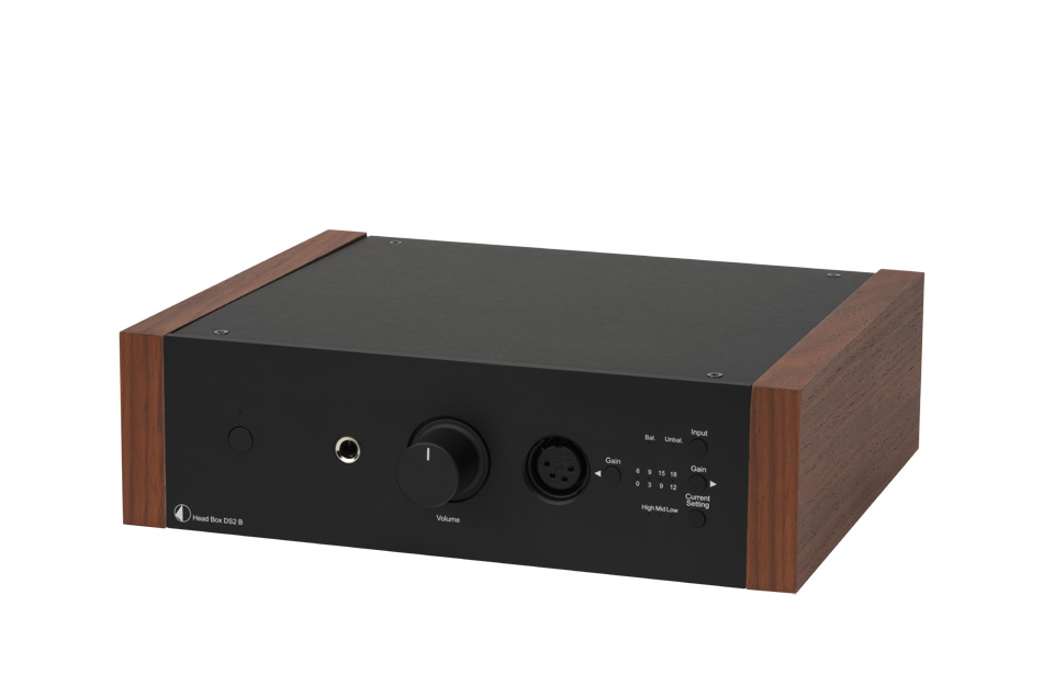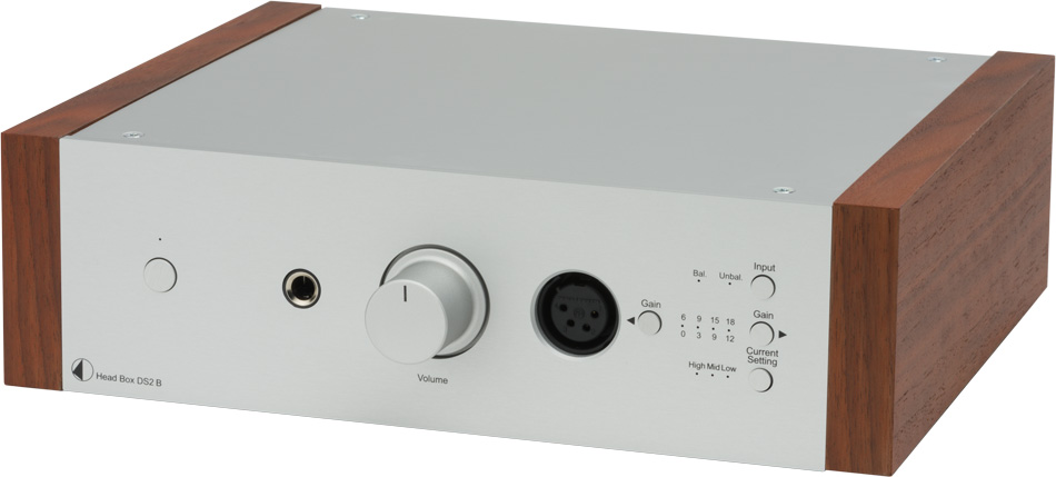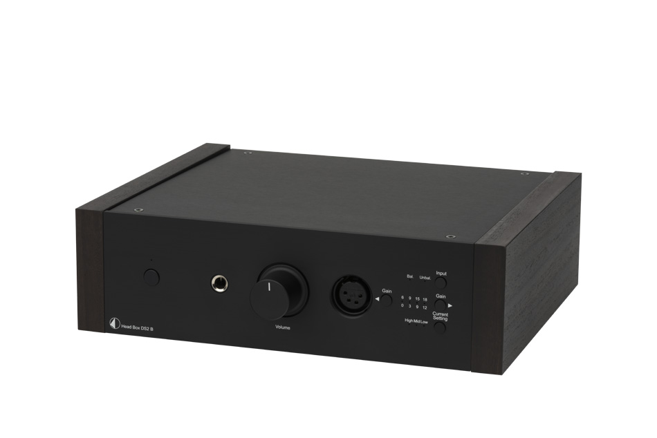 Pro-Ject Head Box DS2 BVollsymmetrischer High End Kopfhörerverstärker• Genug Leistung um anspruchsvolle Kopfhörer zu betreiben • Doppel-Mono Aufbau • Vier Gain-Einstellungen passen sich jeden Kopfhörer an • Drei Current-Einstellungen liefern besten Klang • Unsymmetrischer (6.3mm) und symmetrischer (4 Pin XLR) Kopfhörer-Ausgang • Beide Ausgänge gleichzeitig verwendbar • Phasen-Invertierung direkt nach Eingangsstufe, um unsymmetrisches Signal zu symmetrischem zu machen • Ausgangsstufe bestehend aus TPA6120A2 Chips • BLUE ALPS Potentiometer • Holzseitenteile optional verfügbar • Erhältlich in silber oder schwarz Der Markt für HiFi Kopfhörer hat sich in den letzten Jahren rasant weiterentwickelt. Es wurden neue Modelle und neue Treiber-Designs vorgestellt. Diese Kopfhörer sind im Stande herausragenden Klang zu produzieren, meistens werden sie jedoch von mittelmäßigen Verstärkern angetrieben und erreichen dadurch nicht ihr vollstes Potenzial. Die neue Head Box DS2 B betreibt jeden Kopfhörer mit Leichtigkeit und verhilft diesen mit kraftvollen 1100mW zu Höchstleistungen. Sie bietet drei verschiedene Current- und vier Gain Einstellungen um sich an jeden Kopf– oder In Ohr Hörer anzupassen. Der vollsymmetrische Doppel-Mono Aufbau wird durch einen Phasen Invertierer am Eingang vervollständigt, wodurch jedes eingehende Signal zu einem symmetrischen gewandelt wird. Ein symmetrischer 4-Pin XLR Ausgang ist frontseitig angebracht und garantiert beste Signalübertra-gung an Ihren Kopfhörer. Der hoch angesehene Texas Instruments TPA6120A2 Chip wurde verwendet um erstklassigen Klang mit unhörbarem Grundrauschen zu verwirklichen. Beide Ausgänge sind simultan verwendbar für gemeinsame Hörerlebnisse. Head Box DS2 B passt sich jedem Kopfhörer in Ihrer Sammlung an: schwer zu betreibende Dynamiker, stromzehrende Planarmagneten und sensible In Ear Monitore! Pures Vergnügen aus einer Box!