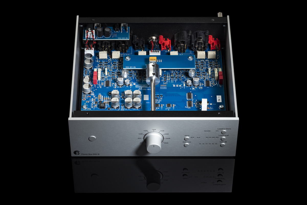 Pro-Ject Phono Box DS3 B• Für MM-, MI- und MC-Tonabnehmer • Symmetrische Ein- und Ausgänge • Verstärkung in sechs Stufen wählbar • Widerstand stufenlos einstellbar • Schaltbarer Subsonic-Filter • Optionales Linear-Netzteil • Externes Netzteil Symmetrisch und immer bestens angepasst Ein Phono-Vorverstärker muss nicht nur feinste Signale des Tonabnehmers auf das Pegelniveau eines Line-Eingangs verstärken. Er muss auch Störungen des Signals so weit es geht unterdrücken und ideal an den Tonabnehmer selbst anpassbar sein. Die Phono Box DS3 B ist dies geradezu auf exemplarische Art und Weise, was sie zu einem der besten und vielfältigsten Phono-Vorverstärker der bezahlbaren Preisklasse macht. Denn sie bietet symmetrische Ein- und Ausgängen sowie umfangreiche Anpassungsmöglichkeiten. Das Gerät verfügt über vielfältige Einstellmöglichkeiten für die Abschlusskapazität sowie den Verstärkungsfaktor und lässt sich damit präzise an MC, MM-, Moving Iron- und High-Output MC-Tonabnehmer anpassen. Der Abschlusswiderstand kann während des Hörens mit dem Drehregler auf der Gerätefront stufenlos justiert werden. Die Verstärkung ist in sechs Stufen einstellbar. Alle Einstellungen können für die Betriebsarten MM und MC verwendet werden. Zwei Eingänge machen den Betrieb von zwei Plattenspielern oder einem Plattenspieler mit zwei Tonarmen möglich. Mit Umschalten der Eingänge werden die individuell für den jeweiligen Eingang gespeicherten Einstellungen eingestellt. Das Gehäuse ist aus einem massiven Stahlchassis gegen Einstreuungen gefertigt, das mit Aluminiumplatten verkleidet ist. Ausführungen• Gehäuse aus gebürstetem Aluminium in silbern oder schwarz • Seitenwangen aus Holz separat erhältlich (magnetisch haftend) Technik für den guten Klang• Eingänge: 1 Paar RCA/Cinch, 1 Paar 3-Pin XLR, 5-Pin-Mini XLR • Ausgänge: 1 Paar RCA/Cinch, 1 Paar 3-Pin XLR • Abschlusskapazität und Abschlusswiderstand einstellbar • Abschlusswiderstand: stufenlos 10 bis 1.000 Ohm (Low-Output MC-Tonabnehmer) • Abschlusskapazitäten/-widerstand: 50pF, 150pF, 300pF, 400pF/47kOhm (High-Output MC-, Moving Iron- und MM-Tonabnehmer) • Verstärkung: +40dB, +45dB, +50dB, +55dB, +60dB und +65dB. (+ jeweils 6dB mit XLR-Anschlüssen) • Zuschaltbarer Subsonic-Filter (20Hz) Technische Daten• Maße B x H x T (T mit Buchsen): 206 x 72 x 194 (205 mit Buchsen) mm • Gewicht: 1.480g ohne Netzteil