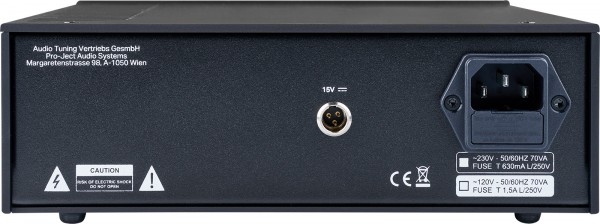 Pro-Ject Power Box RS Uni 1-way TTLinearnetzteil• Für einen Pro-Ject-Plattenspieler • Trenntrafo minimiert Netzstörungen • Soft-Start-System • Verbesserter Gleichlauf • Ruhigerer Antrieb • 15V/DC-Spannungsversorgung • In silber oder schwarz erhältlich PSauberer Kraftspender für den Plattendreher Computer, Lampendimmer und andere elektrische Bösewichte streuen Störkomponenten ins heimische Stromnetz. Darunter leidet auch bei Plattenspielern die Qualität der Wiedergabe, weil der Motor nicht vollkommen gleichmäßig laufen kann. Die Pro-Ject Power Box RS Uni 1-way TT schafft Abhilfe: Ein leistungsfähiger Ringkerntransformator garantiert schon grundsätzlich eine sehr hohe Stromlieferfähigkeit. Die Trenntrafowicklungen mit Schirmungsfolie aus Kupfer schirmen das an das Netzteil angeschlossene Gerät dann zuverlässig von Störkomponenten aus dem Stromnetz ab. Die sekundäre Spannungsgleichrichtung mit einer höchst präzisen Regelung, die hohe Siebkapazität von 10.000µF für den Ausgang sowie die „Low ESR“ Kondensatoren lassen den Motor des Plattenspielers konstanter und ruhiger laufen. Das Gehäuse der Pro-Ject Power Box RS Uni 1-way TT besteht aus gebürstetem Aluminium und ist in schwarz oder silber erhältlich. WICHTIG! Ausschließlich Pro-Ject-Plattenspieler mit 15V-Gleichstromversorgung (DC) können mit der Pro-Ject Power Box RS Uni 1-way TT betrieben werden. Geräte und Plattenspieler aus dem Programm von Pro-Ject Audio mit Wechselspannungsversorgung (AC-Netzteil) oder Fremdfabrikate können nicht mit einer Power Box RS Uni betrieben werden. Vollverstärker und Endverstärker der RS-Linie können durch das optionale Linear-Netzteil Pro-Ject Power Box RS Amp aufgewertet werden. Für eine Pro-Ject Phono Box RS sorgt das optionale Akku-Speiseteil Pro-Ject Power Box RS Phono für sauberen Strom. Technik für den guten Klang • 1 Ausgang zur Versorgung eines Pro-Ject-Plattenspielers mit 15V-Gleichstromversorgung (DC) • Siebkapazität: 10.000µF • Restwelligkeit: mind. 75dB unter Ausgangsspannung Technische Daten • Maße B x H x T (T mit Buchsen): 201 x 72 x 195mm • Gewicht: 4.800g