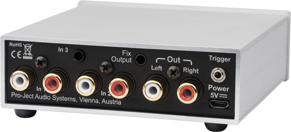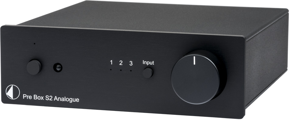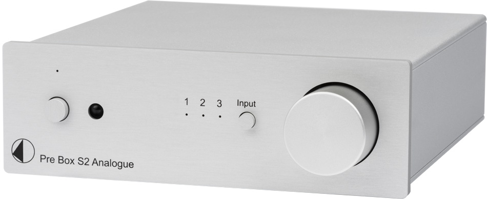 Pro-Ject Pre Box S2 AnalogueStereo Vorverstärker• Fortschrittlicher Schaltkreis mit Premium Komponenten • Neutraler Klang mit extrem geringem Grundrauschen • 3 Stereo Line-Eingänge • 1 Fixer Line Ausgang • 1 Pre Augang • Motorgesteuerte Lautstärkeregelung • SMD Technologie für kürzeste Signalwege • Sehr geringe Ausgangsimpedanz • Vergoldete Anschlüsse • IR Fernbedienung (An/Aus, Eingangswahl, Lautstärke) • 12V Trigger Ausgang • Alu/Metall Gehäuse schützt vor Vibrationen und Interferenzen • Verfügbar in silber oder schwarz Audiophiler Vorverstärker mit 3 Hochpegel-Eingängen und Fernbedienung! Pre Box S2 Analogue bietet drei Line Level Eingänge, zwei Paar RCA Buchsen sowie einen separaten 3,5mm Klinken-Eingang. Drei individuelle analoge Signale können an Endverstärker, wie der Amp Box S2 oder anderen Pro-Ject Box Design Endverstärkern, über die RCA Ausgänge weitergeleitet werden. Ein fixer 3,5mm Klinken-Ausgang leitet das Signal an zum Beispiel einen Kopfhörerverstärker, wie Head Box S2, weiter. Der 12V Trigger Ausgang kann weitere Produkte mit Trigger Eingängen fernschalten, um zusätzlichen Komfort zu bieten. Die unglaublich niedrigen Verzerrungen garantieren ein Hörerlebnis, welches noch nie in dieser Preisklasse zu finden war! Das Gehäuse besteht aus einer soliden Aluminium/Metall Konstruktion und schützt effektiv gegen Vibrationen und elektromagnetischen Interferenzen, dadurch ergibt sich ein Klangbild frei von Störungen. Pre Box S2 Analogue ist in silber oder schwarz verfügbar und kann von jeder 5V Quelle mit Strom gespeist werden.
