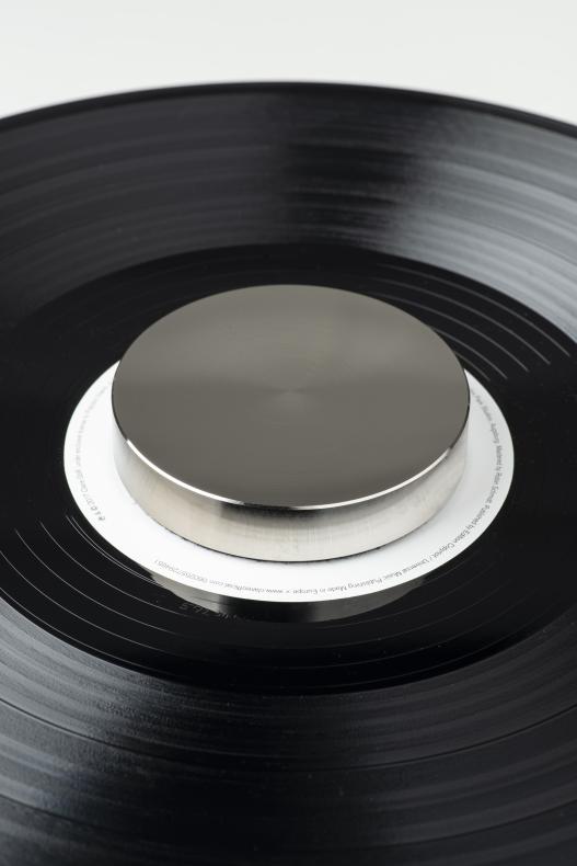 Record Puck PRO• Sorgt für einen festen Sitz der Schallplatte• Reduziert unerwünschte Resonanzen • Optimiert die Wiedergabe welliger Vinyls • Vernickelte Aluminium Oberfläche • Filzauflage an der Unterseite • Klangverbesserung für alle Plattenspieler Material: Vernickeltes Alumiunium Gewicht: 190g Durchmesser: 78mm Höhe: 16mm Überprüfen Sie Ihre Spindelhöhe! Die Spindelhöhe mit aufgelegter Schallplatte darf 10,5mm nicht überschreiten!