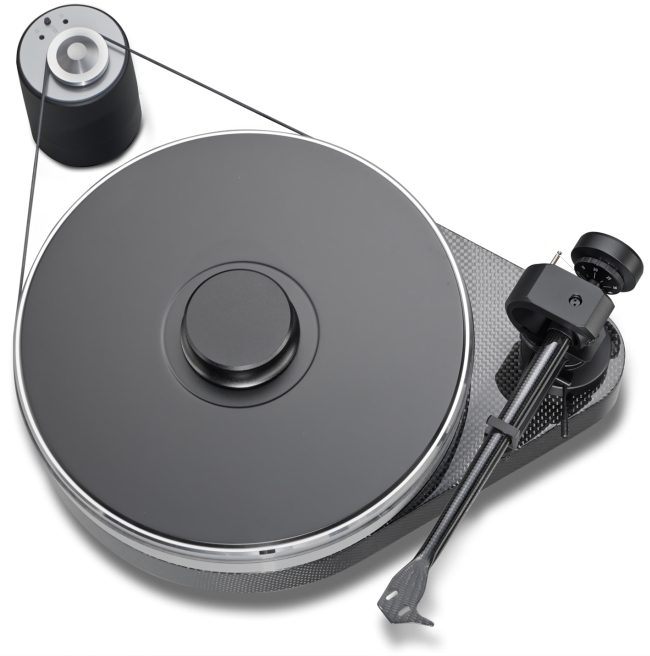 Pro-Ject RPM 9 CarbonHighend Plattenspieler mit 9“ Evo Tonarm• Aufwändige Sandwichkonstruktion der Basis mit Materialmix aus MDF, Carbonfasern & Stahlgranulat • Spezielle Hitzebehandlung der Basis • Masselaufwerk/Subchassis-Konstruktion mit Magnetfüßen • Invertiertes Plattentellerlager mit Keramikkugel/Platte • 7,2kg schwerer resonanztoter Aluminium- plattenteller mit TPE-Dämpfung und Vinylauflage als Matte • DC Netzteil mit AC Motor • Präzise DC-gespeister AC Generator (Speed Box) integriert • Elektronische Motorsteuerung mit 33/45 Upm-Schalter • Freistehender Motor mit massivem Stahlfuß • Komplett mit 9“ Tonarm 9cc Evolution • 5P Connect it Phono E Kabel mit RCA Steckern RPM 9 Carbon: Clevere Schönheit mit echter High-end Wiedergabequalität Durch intensive Forschung und Entwicklung ist es uns möglich das Klangergebnis des klassischen RPM-Design weiter zu verfeinern. Der RPM 9 Carbon nutzt eine extraschwere Chassiskonstruktion aus CNC-gefrästem MDF mit eingearbeitetem Stahlgranulat, welches in Kunstharz vergossen ist. Durch aufwändige Hitzebehandlung und Carbonüberzug wird ein perfektes Resonanzverhalten erreicht. Das Masselaufwerk wird durch Magnetfüße wirkungsvoll vom Untergrund entkoppelt. Ein spezieller polierter Aluminiumteller mit eingelagerter TPE-Resonanzdämmung nutzt als Matte eine Vinylschicht und das invertierte Plattentellerlager mit Keramikkugel und Platte bietet überragende Laufruhe und Rumpelfreiheit. Der extra schwere freistehende Motor ist mit einer präzisen Motorsteuerung ausgestattet, die eine komfortable 33/45 Geschwindigkeitsumschaltung ermöglicht. Mit dem kompromisslosen 9“ Evo Tonarm mit konisch zulaufendem Rohr und invertierten Spitzenlagern findet jedes Tonabnehmersystem ideale Abtastbedingungen. Das Signal wird über die hochflexible interne Verkabelung und das „Connect it Phono E“ Phonokabel mit RCA-Steckern an die Vorstufe weitergeleitet. Auf Wunsch auch mit eingebautem Tonabnehmer lieferbar! SuperPack: mit montiertem MC-Tonabnehmer Ortofon Cadenza Red und Phonokabel Connect it 5P-CC 123cm