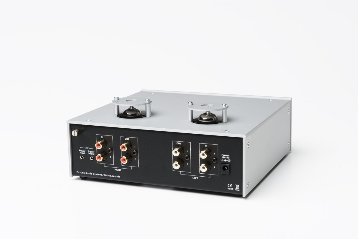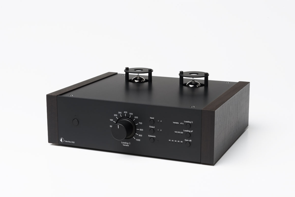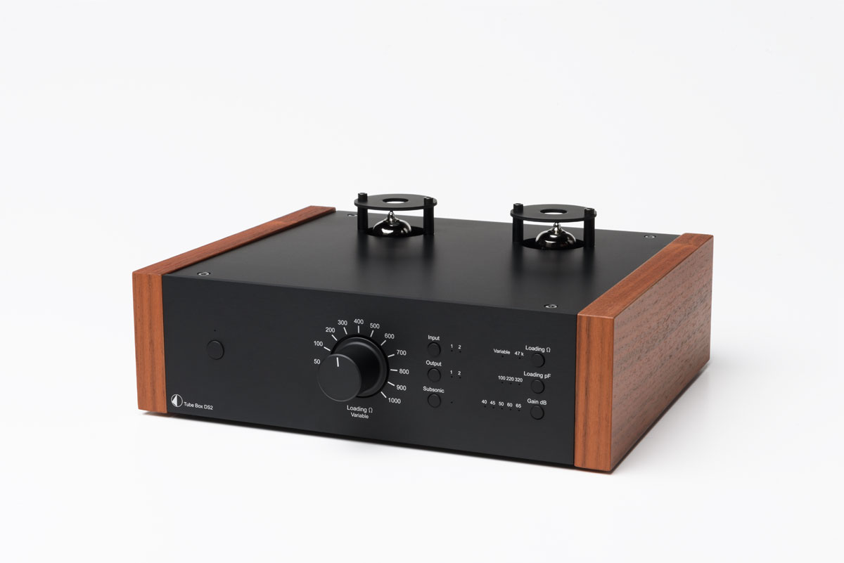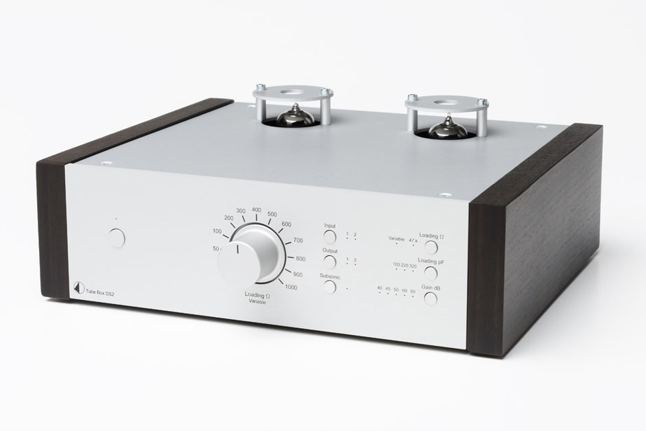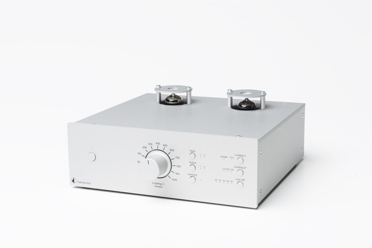 Pro-Ject Tube Box DS2Röhren Phono-Vorverstärker• Geeignet für MM und MC Tonabnehmer • Präzise RIAA-Entzerrung • Ultra rauscharme Schaltung • Auswahl zwischen 2 Phonoeingängen & 2 Lineausgängen • Dual-Mono Auslegung für optimale Kanaltrennung • Wählbare Eingangsimpedanz (für MC: fix oder variabel) • Wählbare Eingangskapazität (für MM) • Schaltbarer Subsonicfilter • Hartvergoldete RCA Ein-/Ausgangsbuchsen • Sandwichgehäuse Alu/Metall schützt vor Vibrationen und elektromagnetischen Einstreuungen • Ausführungen: Silber oder schwarz mit oder ohne Holzseiten (Eukalyptus, Rosenut, Walnuss) Premium-Phonovorstufe mit Röhrenbestückung und Highend-Klangqualität ! Dieser hochpräzise Röhren-Preamp profitiert von der ausgefeilten Schaltungstopologie des Dr. Sykora und beinhaltet nur beste Komponenten. Die Vorstufe ist sowohl für MM als auch MC Tonabnehmer geeignet. Als Besonderheit bietet sie nicht nur die Anschlussmöglichkeit für 2 Plattenspieler und 2 Line-Ausgänge sondern auch eine stufenlos anpassbare Eingangsimpedanz für MC-Tonabnehmer mit niedriger Ausgangsspannung, welche sogar während der laufenden Plattenwiedergabe angepasst werden kann! Für MM-Abtaster besteht die Möglichkeit die Eingangskapazitäten individuell zu verändern, ein schaltbarer Subsonicfilter hält tieffrequente Störgeräusche unterhalb von 20Hz von Verstärkern und Lautsprechern fern. Alle verwendeten Baugruppen, wie Röhren und Polypropylenkondensatoren sind nach audiophilen Gesichtspunkten gewählt und garantieren atemberaubende Klangerfahrung. Ein perfektes Upgrade für ambitionierte Vinylliebhaber!