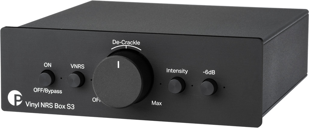 Pro-Ject Vinyl NRS Box S3Rausch- und Geräuschunterdrückung• De-Crackling-Funktion reduziert Knackgeräusche • Rauschunterdrückung für Vinyl-Schallplatten • DSP-basierte Verarbeitung mit 24 Bit • 96 kHz Abtastrate für präzise Verarbeitung Pro-Ject Vinyl NRS Box S3. Erwecken Sie Ihre alten Platten wieder zum Leben Leider werden klingen die alten Lieblingsschallplatten im Laufe der Zeit durch häufiges Abspielen oft verrauscht oder erleiden Kratzer, die zu Knackgeräuschen führen. Neu zu kaufen gibt es sie sowieso nicht mehr, und viele Titel finden sich auch nicht auf Streaming-Plattformen. So bleibt einzig die gute alte Schallplatte, um diese Lieblingstracks zu hören. Klar; ein leichtes Rauschen und ein, zwei Knackgeräusche gehören für Viele zum Vinylerlebnis – doch ab einem gewissen Punkt und bei hohen Lautstärken macht das keinen Spaß mehr. Die Lösung heißt Pro-Ject Vinyl NRS Box S3. Sie entfernt starkes Rauschen und Knacken und lässt Ihre alten Schallplatten wie neu klingen. Ein spezieller Algorithmus erkennt Knackgeräusche. Sie können die Wirkung des Algorithmus ganz einfach auf der Front einstellen: Die Vinyl NRS Box S3 reduziert knackende Stellen um bis zu 8 Dezibel. Wenn Sie die De-Crackling-Funktion nicht nutzen möchten, schalten Sie den Algorithmus über das Potentiometer einfach aus. Mit dem „Vinyl Noise Reduction“-Feature unterdrücken Sie auch Rauschen der Schallplatte wirkungsvoll. Ausstattung und Technik für den guten Klang • De-Crackling-Funktion mit einstellbarer Empfindlichkeit reduziert Knackgeräusche • Unterdrückung des Vinylrauschens • Präzise DSP-basierte Verarbeitung mit 24 Bit und 96 kHz Abtastrate • Interne Abtastung und Berechnungen: 96 kHz/24 Bit • Interne Verarbeitung: 56-Bit-Akkumulator • Galvanisch reiner Bypass, wenn ausgeschaltet • Voll-Aluminium-Gehäuse im S3-Standard • Erhältlich in Silber oder schwarz Technische Daten • Eingangsspannung: 300-500 mVrms • Maximale Eingangsspannung (Clipping): 4.4Vpp, 1.55Vrms • Clipping-Anzeige: -0.6dB unter dem tatsächlichen Clipping • Frequenzgang: 20Hz bis 20 kHz: -0,6 +0,1dB • Rauschunterdrückung: bis zu 8 dB (20Hz bis 20kHz) • De-Crackling-Intensität: bis zu 8 dB (2kHz bis 20kHz) • Bypass-Modus: Line In & Out sind galvanisch miteinander verbunden • Abmessungen B x H x T (T mit Buchsen): 103 x 37 x 104 (119) mm • Gewicht: 340g (ohne Netzteil)